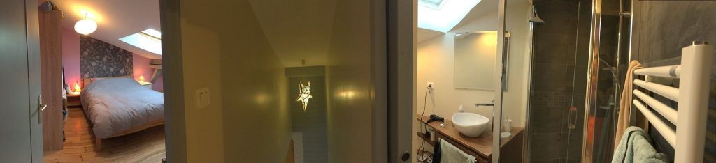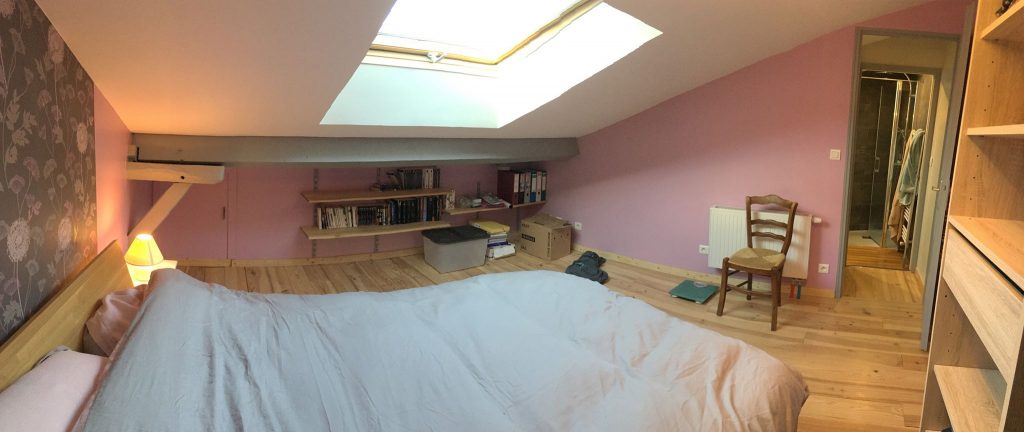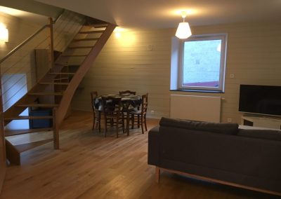 -1er étage = grande pièce de vie avec cuisine + salon + salle à manger